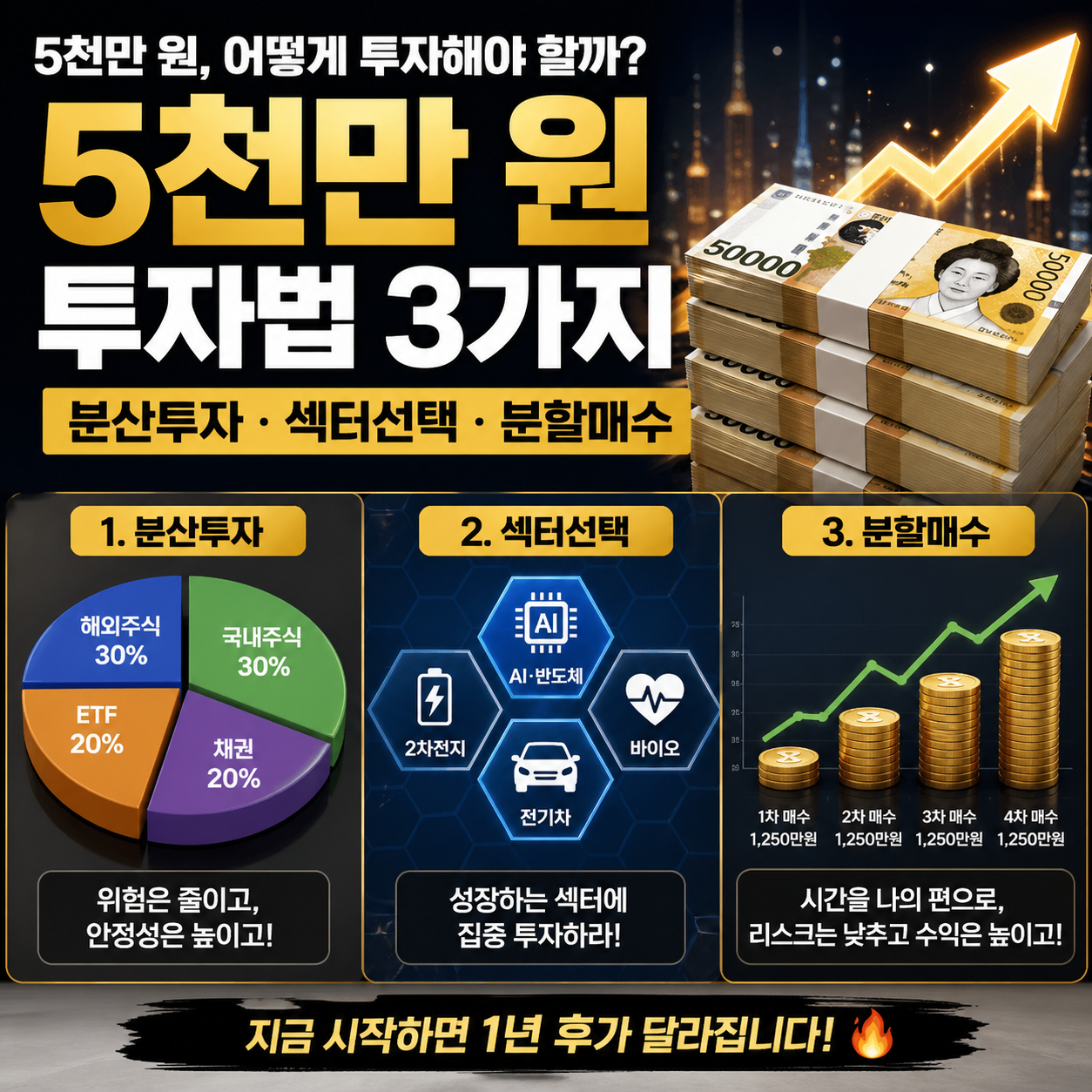 결국 5천만 원을 어디에 넣느냐보다, 어떻게 나눠서 넣고 어떻게 관리하느냐가 결과를 가릅니다. "좋은 섹터 4개 담아라"는 말은 맞습니다. 하지만 그 말을 듣고 한 번에 몰아 넣으면 타이밍이 조금만 틀려도 버티는 힘이 없습니다. 급등을 노리는 투자가 아니라, 시간을 이용하는 투자로 접근할 때 비로소 분산투자가 제 기능을 합니다. 저는 그걸 꽤 오랜 시간을 돌아서 배웠습니다.